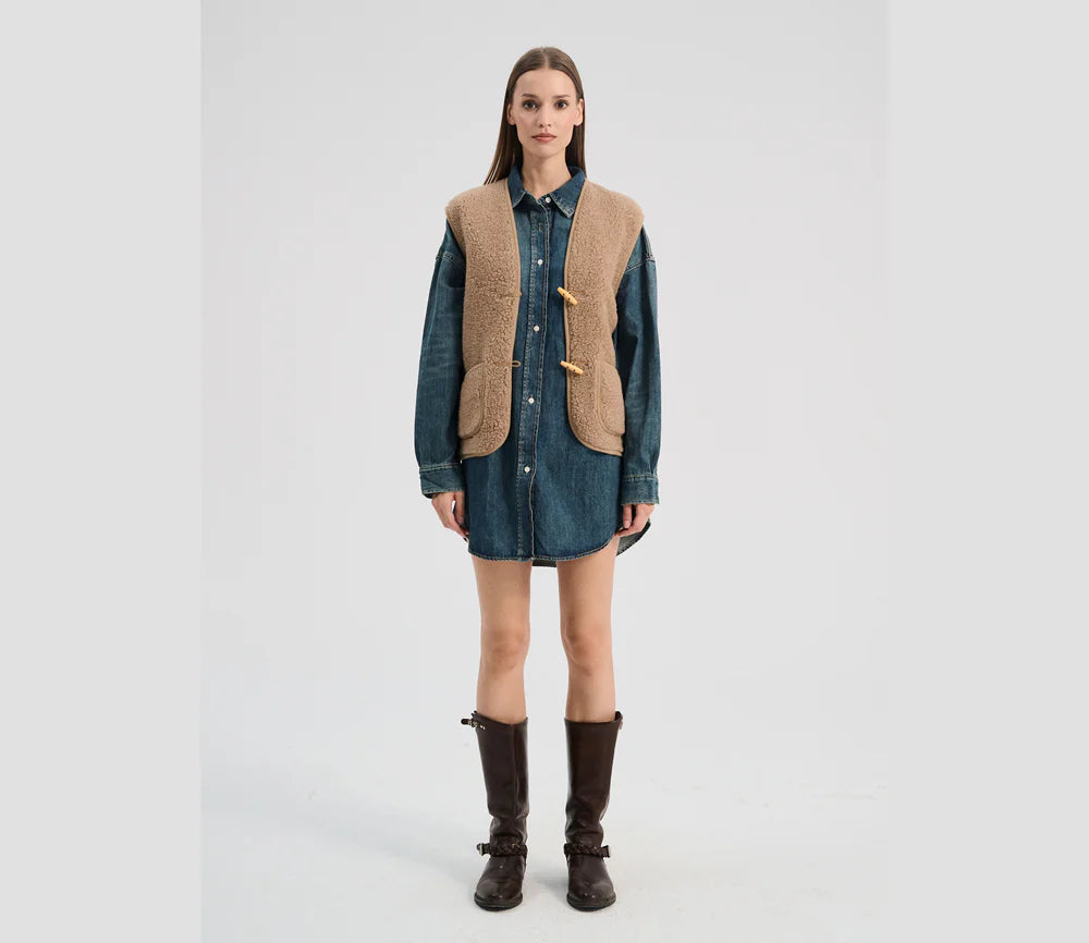 Die Fleece-Struktur mit Schaffell-Optik ist nicht nur optisch ein Highlight, sondern schmiegt sich flexibel an den Körper an.