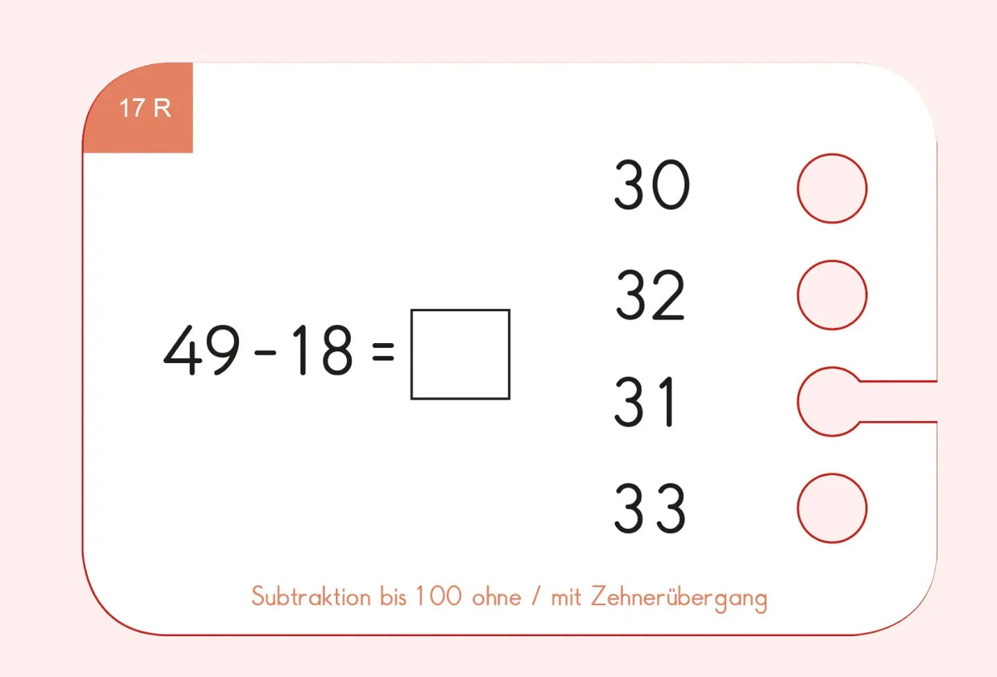 - Inhalt: 24 Karten mit 48 Subtraktionsübungen bis 100
