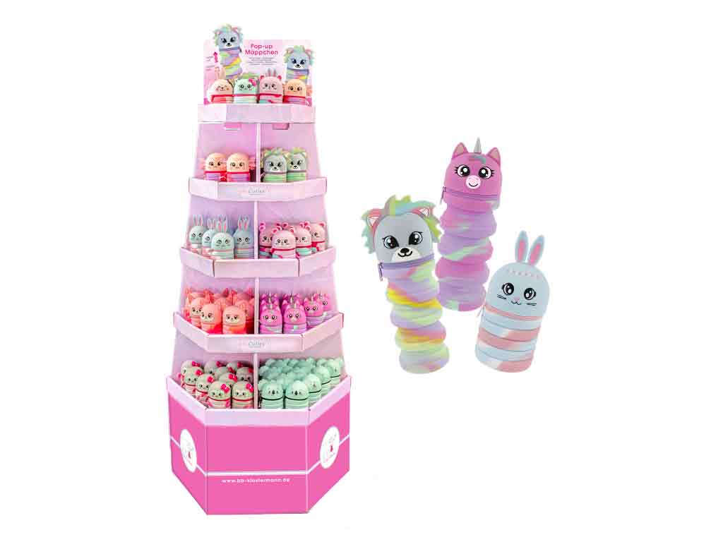 Die praktische Pop-Up-Funktion macht das Etui besonders vielseitig: Geschlossen dient es als klassisches Stifteetui für Schule oder unterwegs. Wird das Mäppchen nach unten gedrückt, fährt der obere Teil nach oben und verwandelt sich in einen praktischen Stiftehalter, sodass Stifte schnell griffbereit sind.