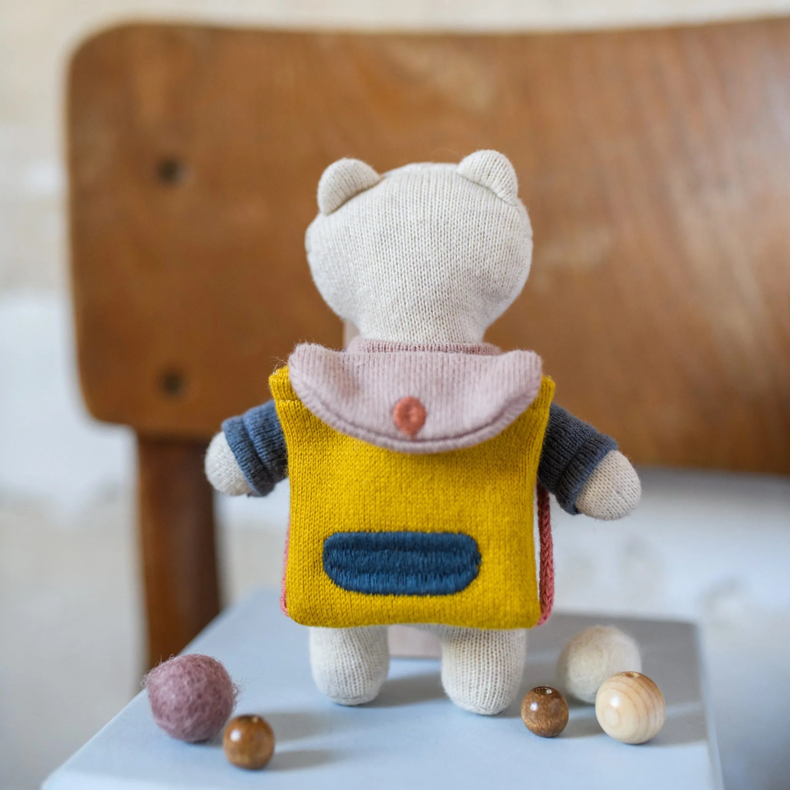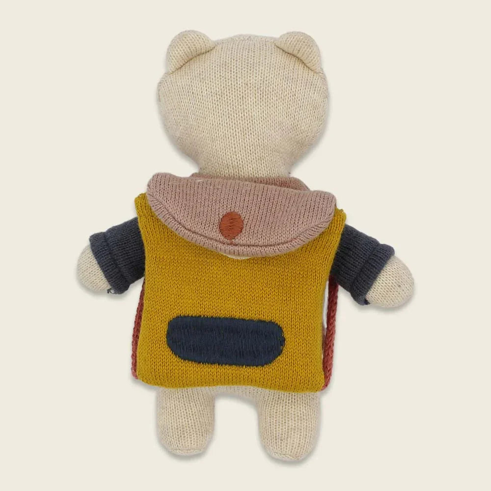 Gefertigt aus feinem Strickstoff aus 100 % Bio-Baumwolle und gefüllt mit 100 % Polyester, steht er für Geborgenheit, Qualität und Langlebigkeit. Das Kuscheltier ist waschbar bei 30 °C und entspricht der EN71-Norm für sicheres Kinderspielzeug.