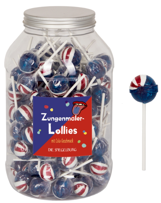 Die Zungenmaler-Lollies – Cola sorgen nicht nur für süßen Naschspaß, sondern auch für einen überraschenden Effekt: Beim Schlecken färbt sich die Zunge blau!